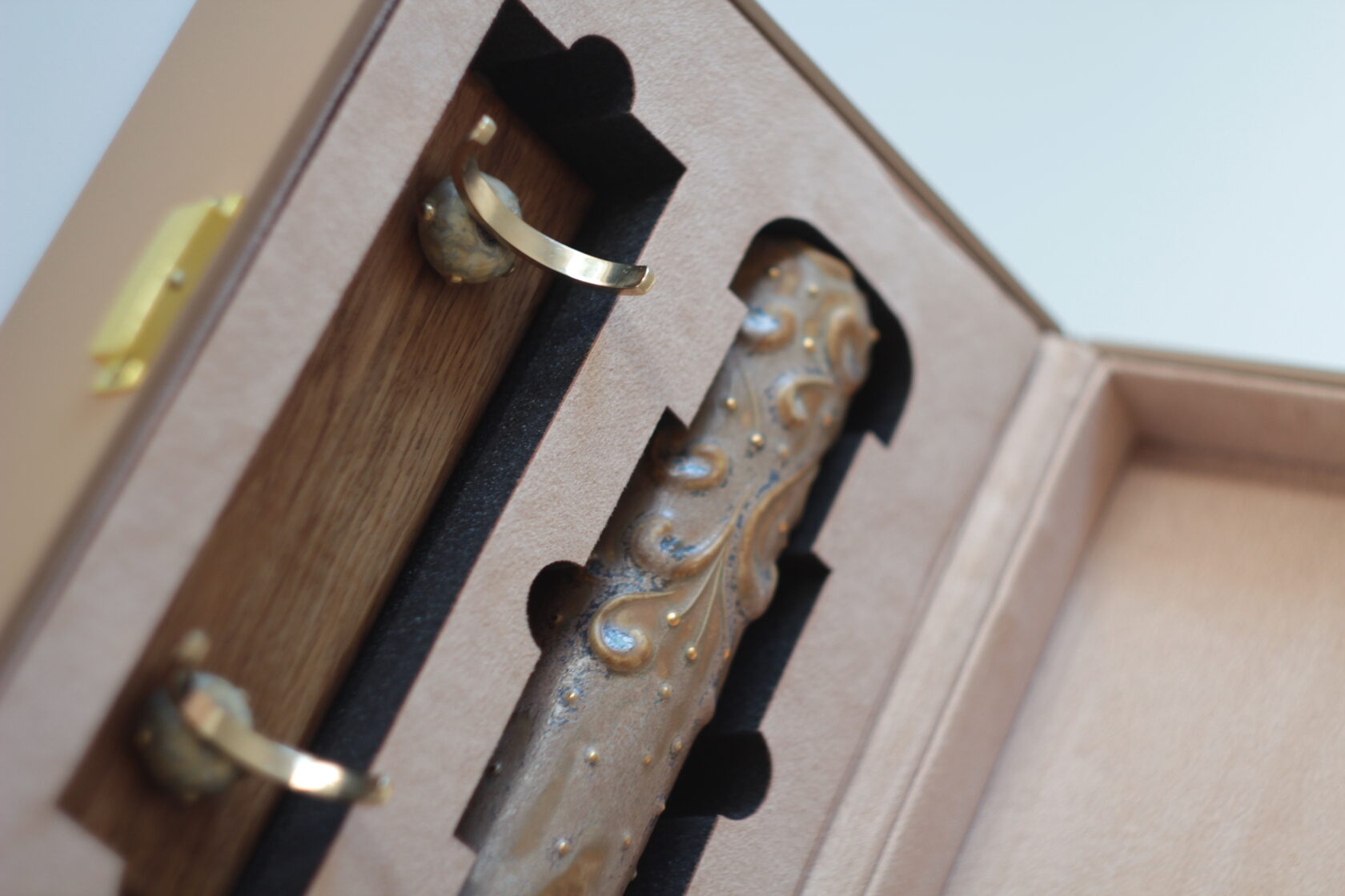 Каждое изделие выполняется вручную нижегородскими мастерами. В качестве основного сырья используется клееный сосновый брус, поскольку именно сосна обладает уникальным рисунком волокон.